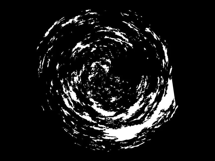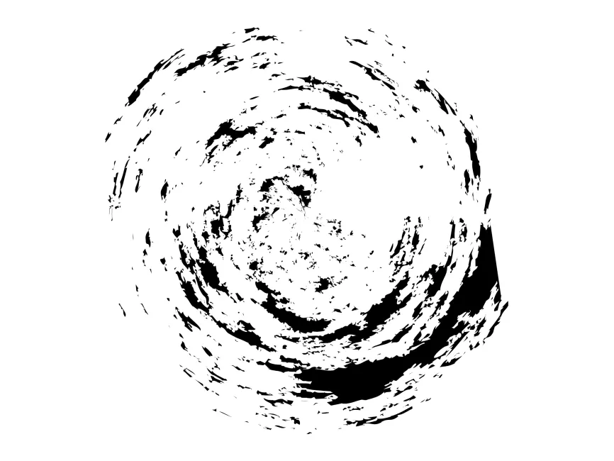 The Vortex Distortion Effect is an abstract, high-energy design element that visually resembles a swirling motion, similar to a whirlpool, tornado, or cosmic spiral. The irregular black and white contrast gives the shape a grungy, distressed, and dynamic aesthetic, making it perfect for brands and designs that seek to convey motion, intensity, and transformation.