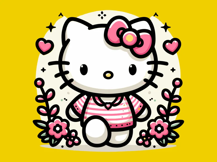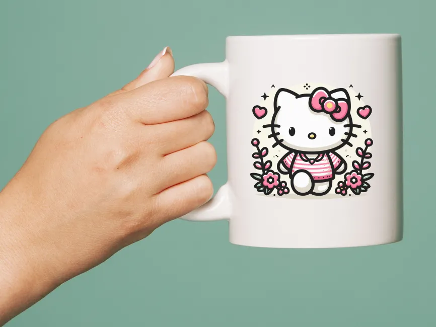 Walking Hello Kitty with Flowers vector design SVG, Ai, EPS, PNG and PDF format free download