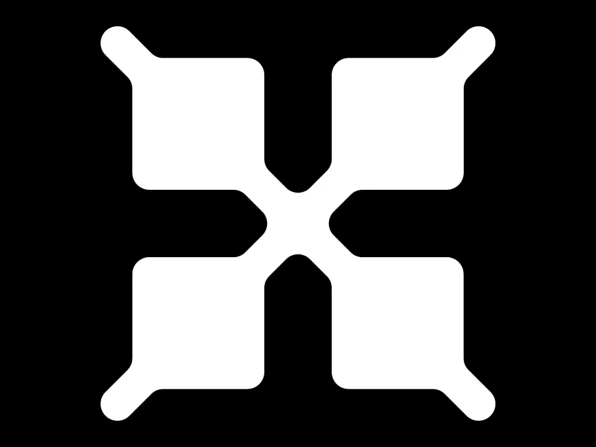 This geometric vector shape features a symmetrical "X" structure with rounded edges and an interconnected design. The fusion of curved and sharp elements creates a modern and futuristic aesthetic, making it an excellent choice for technology, gaming, and network-related branding.