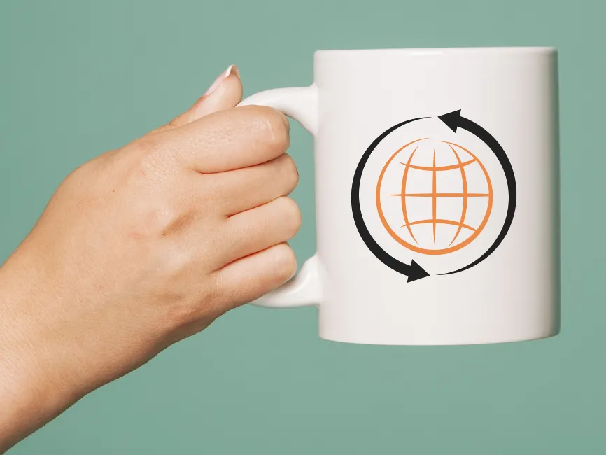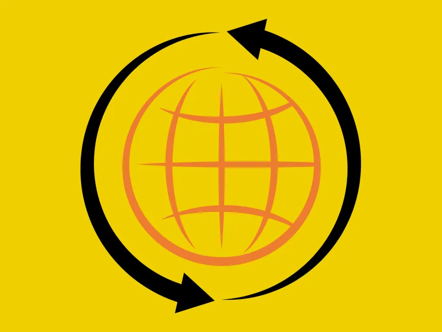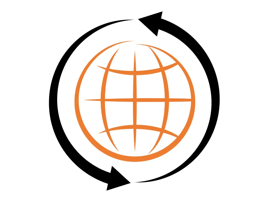 - Structure: A central globe with latitude and longitude lines, encased within a circular motion of two opposing arrows, creating a sense of flow and continuity.